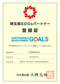 県内企業・団体等が行う活動とSDGsとの関連性を明確にする事で、県内企業等におけるSDGs達成に向けた具体的な取組を促進し、企業等の価値向上及び競争力の強化を図る事を目的とした(埼玉県SDGsパートナー)に登録しております。
