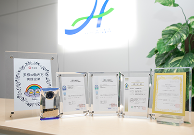 ISO14001の認証を取得し、事業活動を通じて、環境配慮型商品の提案や、環境配慮型技術の積極的な採用を行い、環境に配慮したサービスの提供を行っております。