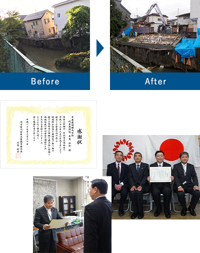 ・埼玉県の川の応援団制度に登録し、サクラタウン周辺の東川を桜が映えるきれいな川であり続けられるよう、清掃活動を行っております。
