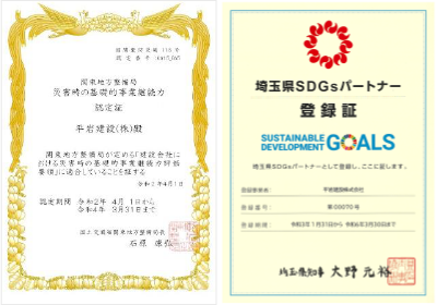 平岩建設は、地域に根ざした企業活動と自然と調和した快適な生活空間の創造という事業を通じ、地域とパートナーシップを組みながら、環境保全や災害に強いまちづくりに専念し、ヒライワグループ、ひいては関連する協力会社と一体となって、SDGsの目標達成に取り組んでまいります。